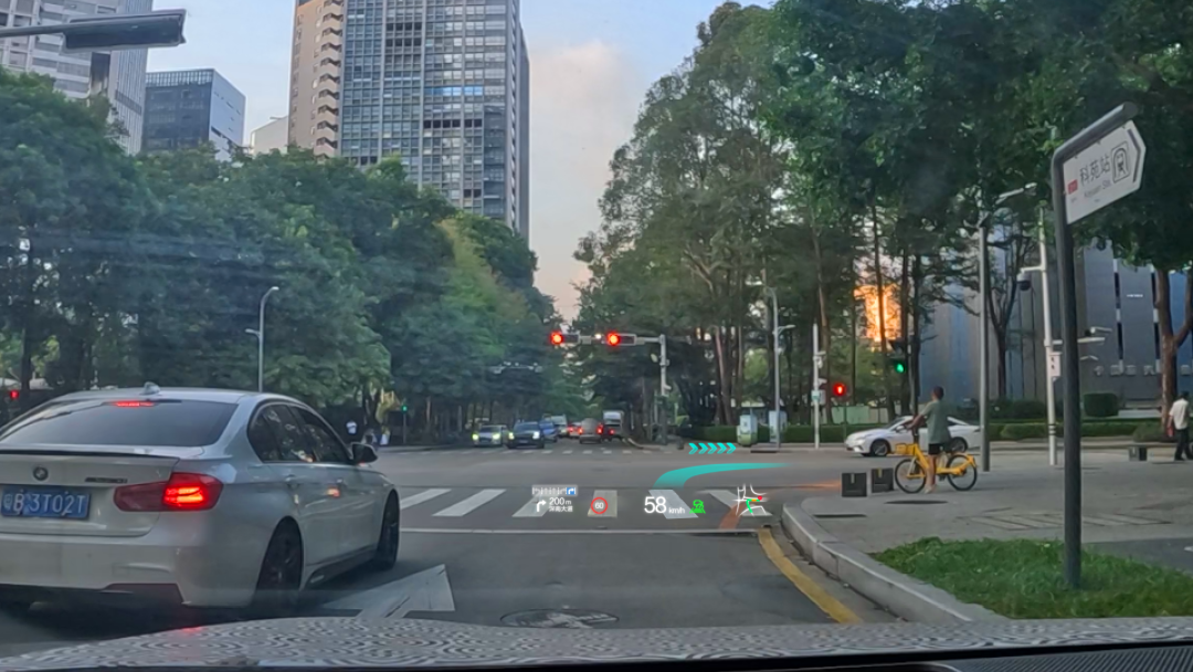 Based on the complex variable environment, the opto-mechanical design of large size and small volume is completed, and the multi-data fusion algorithm is used to realize the superposition and fusion display of assisted driving information such as navigation and ADAS on the real road conditions, which improves driving safety and provides more cool and a smarter driving experience.