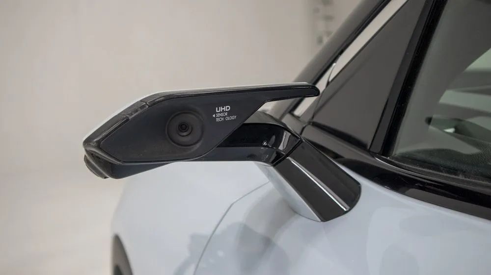 而最個性其實都不是這些,看到那狹窄的外后視鏡了么?魔方未來將會使用與奧迪e-tron相似的電子后視鏡,它可以降低4%的風阻,更能全天候提供給駕駛員清晰的車側(cè)視野,且視野范圍比傳統(tǒng)后視鏡大幅增加。