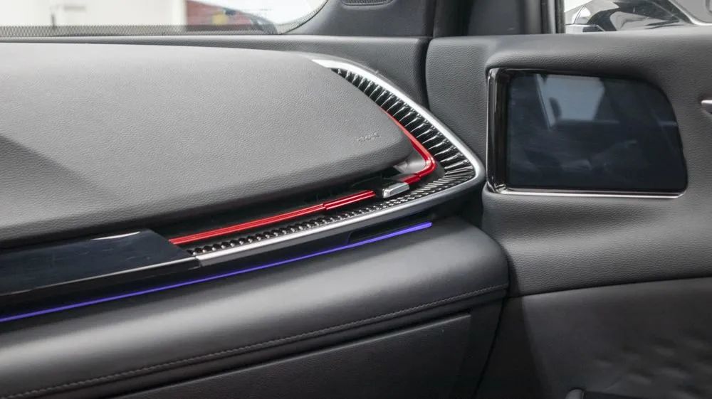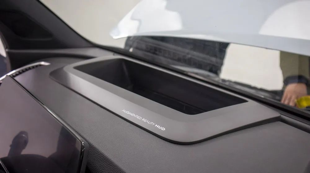 由于拍攝車處于虧電狀態(tài),所以很遺憾我沒有機會體驗到魔方的全液晶儀表以及中央大屏。據(jù)了解,新車配備了AR-HUD,其投影面積可達60英寸,分辨率達到854×420像素,可將儀表、實景導航、輔助駕駛等信息直接在前風擋上投射顯示,實現(xiàn)導航路口指引、駕駛輔助、視頻播放等功能,可有效提升行車安全。
