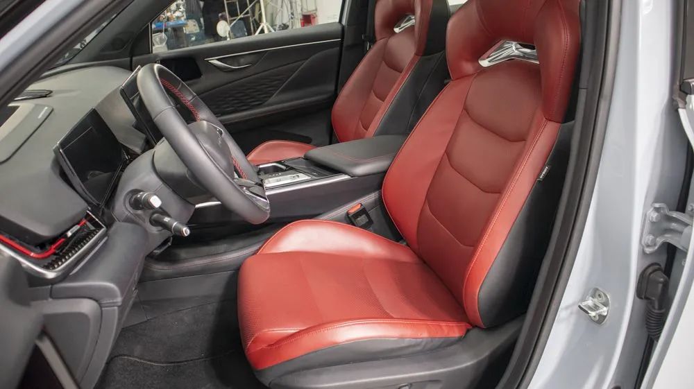 空間舒適度方面,魔方為前排乘客提供了一體式運動座椅,座椅的支撐與包裹感都不錯,但座椅填充物較硬,多少會影響乘坐體驗,后排同理。