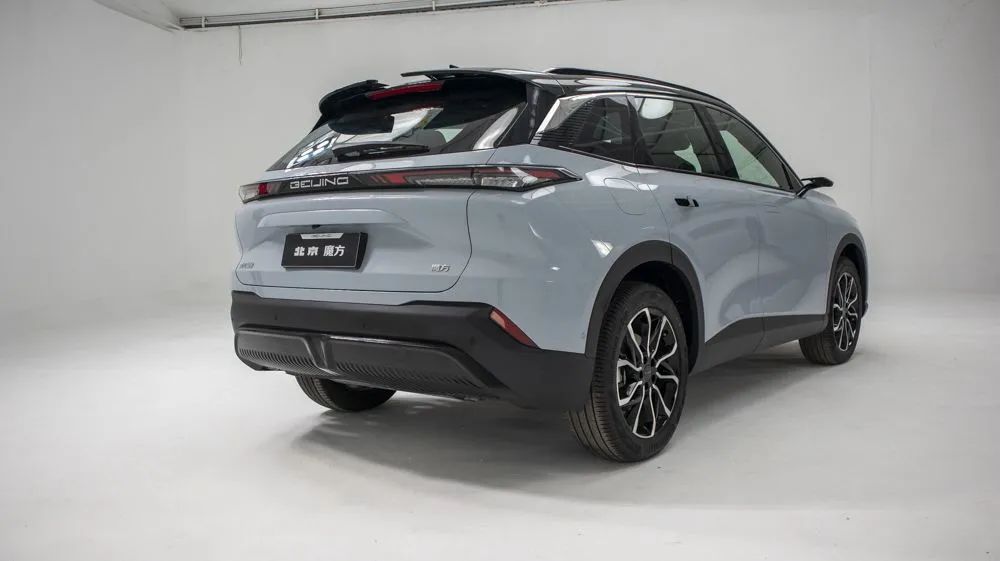 北汽魔方的車身側(cè)面有著傳統(tǒng)SUV的圓潤豐滿,但雙色車身的設(shè)定以及隱藏門把手的使用再次提醒人們,別看我是燃油車,但我玩的就是個性。