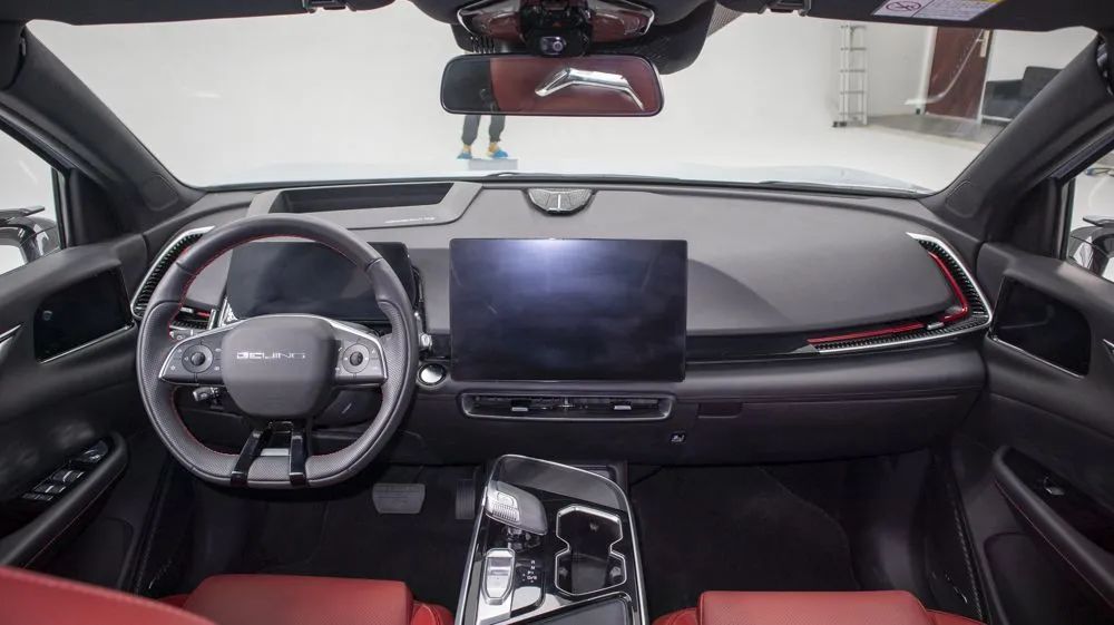 由于拍攝車處于虧電狀態(tài),所以很遺憾我沒有機會體驗到魔方的全液晶儀表以及中央大屏。據(jù)了解,新車配備了AR-HUD,其投影面積可達60英寸,分辨率達到854×420像素,可將儀表、實景導航、輔助駕駛等信息直接在前風擋上投射顯示,實現(xiàn)導航路口指引、駕駛輔助、視頻播放等功能,可有效提升行車安全。